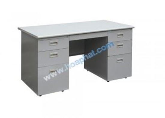 Bàn làm việc mặt gỗ Lamilate ,chân thép sơn tĩnh điện. Bàn có 2 hộc liền 3 ngăn kéo , và 1 ngăn kéo nhỏ lắp dưới mặt gỗ